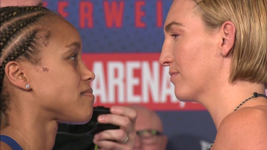 Watch the UK’s Natasha Jonas face-off against the US’s Mikaela Mayer ahead of their IBF welterweight world title fight in Liverpool. Source