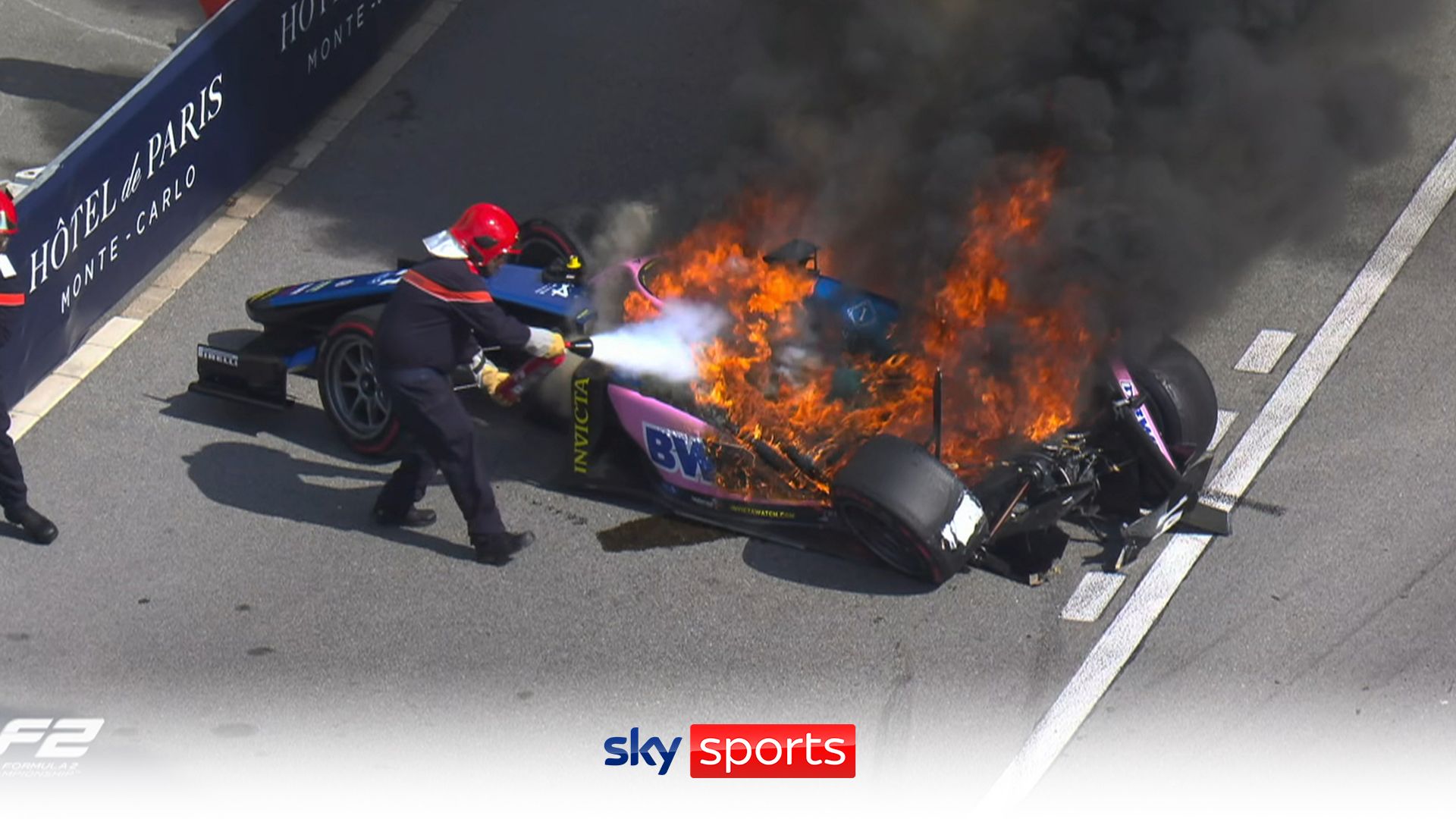 Jack Doohan’s Virtuosi crashed and caught fire during the F2 Monaco feature race with Zane Maloney inches away from crashing into the wreckage. Source
